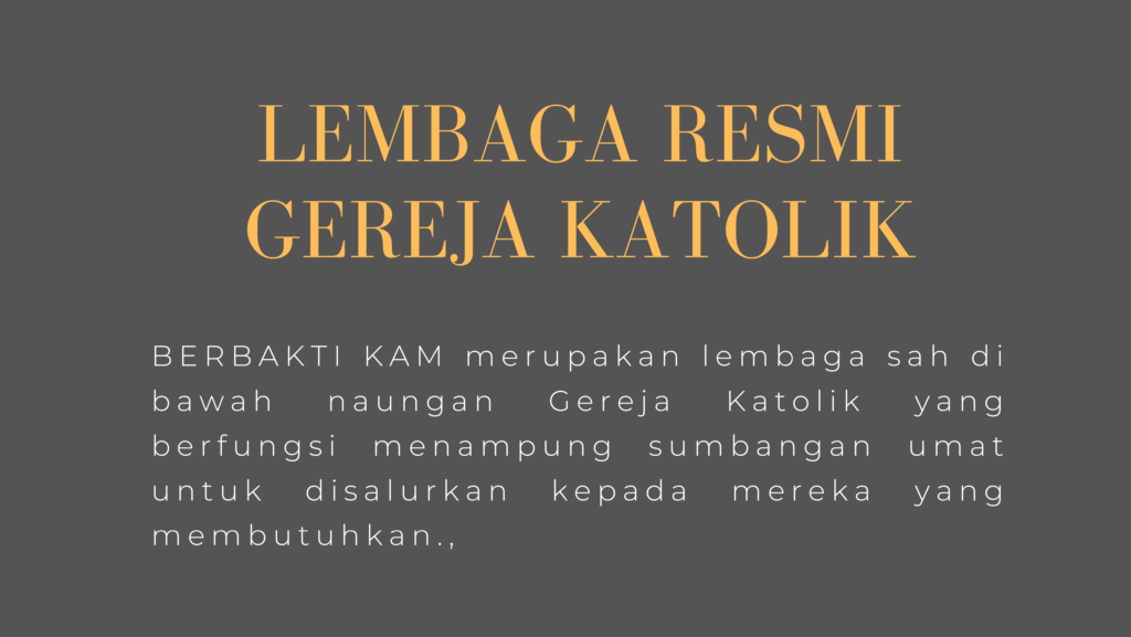 - Badan Penerimaan Sumbangan dan Bantuan Amal Keagamaan Katolik Keuskupan Agung Medan (BERBAKTI KAM) adalah Badan Amal Gereja yang didirikan oleh Uskup Agung Medan dengan Akte Notaris No 11 tertanggal 12 Agustus 2025.