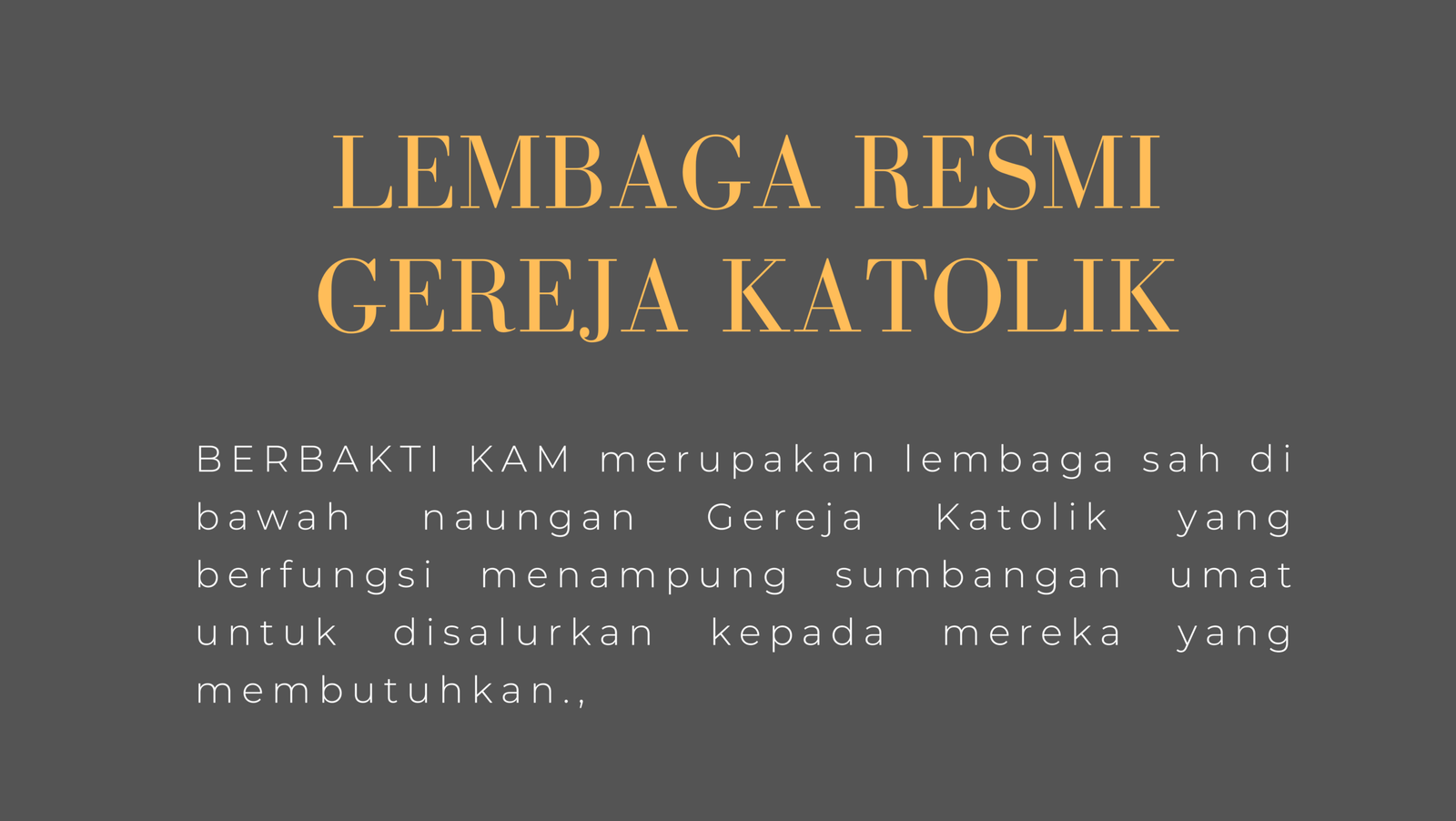 - Didirikan menjadi Lembaga Penerima Sumbangan Keagamaan (LPSK) yang resmi bagi umat beragama Katolik :